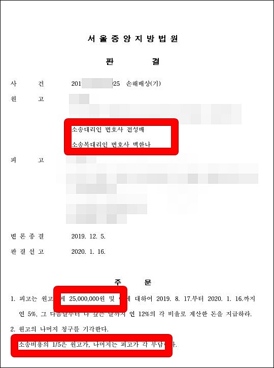 ¾Æ³»´Â »ó°£¼Ò¼ÛÀ» Çß°í ÆÇ°áÀ» 2500¸¸¿ø ¹Þ¾Ò½À´Ï´Ù.